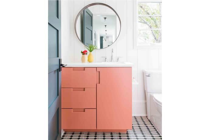 What designers say: This versatile white works with many styles and colors, Bishop says. “The reason I would suggest white on the wall is that you can then paint the vanity or the cabinet a really great, punchy color,” she says, such as Red Earth.
